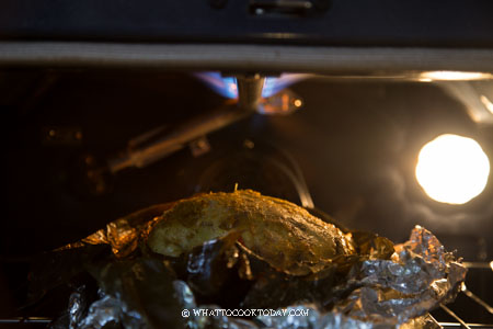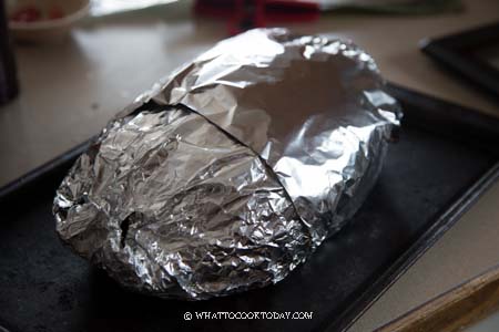 Cover with another oversized aluminum foil and wrap the chicken with the foil.