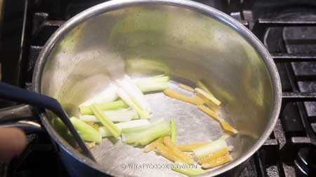 - Cut the white part of the green onion into about 2 inches long and split into half