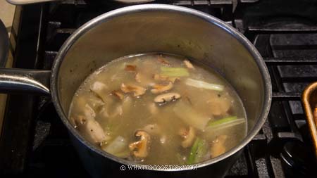 - Add the chicken broth and bring to boil. Lower the heat and add the veggies. Let it simmer for about 10 minutes. Add seasonings and adjust to your taste. Turn off the heat and add goji berries. The residual heat will soften them. We don't want to overcook the goji berries as they can get sour