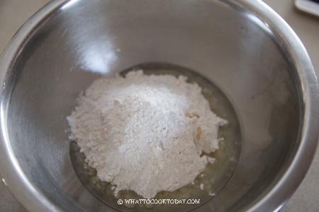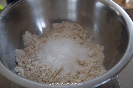 - Add sugar, baking powder, baking soda, and salt. Stir to combine. Crack one large egg in a bowl and then beat it. Pour only half of the beaten egg into the flour mixture. Save the other half for other use. Add 1 Tbsp of milk. Combine with your hand to form a dough. If it's a bit too dry, add a bit more milk. You should be able to form a rough dough. Cover and let it rests for 15 minutes or up to 1 hour (I only do 15 minutes)