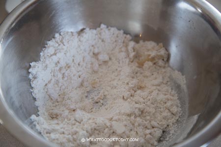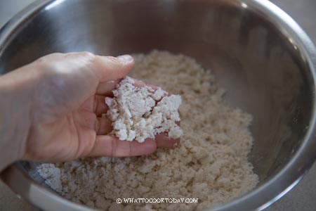 Combine with your hand to form a dough. If it’s a bit too dry, add a bit more milk. You should be able to form a rough dough. Cover and let it rests for 15 minutes or up to 1 hour (I only do 15 minutes)