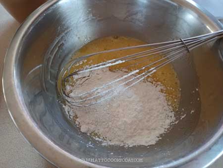 1. Combine yolks, sugar, oil, vanilla extract, and milk in a mixing bowl with a whisk