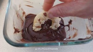 - Melt the chocolate over a water bath. I find it easier to transfer the melted chocolate into a cup so you can dip the cookie into the melted chocolate
