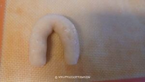- Divide the dough into 24 pieces (roughly about 15 grams each). Roll each one into about 4 inches rope