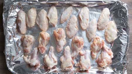 2. Preheat oven to 375 F. Line the baking sheet with heavy-duty aluminum foil. Arrange the chicken pieces on the baking sheet in one layer