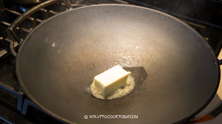 - Mix all the seasonings ingredients in a bowl and set aside. Melt butter in a large wok or skillet. Add onion, garlic, and ginger. Stir fry until the onion has turned soft and translucent, about 5 minutes or so