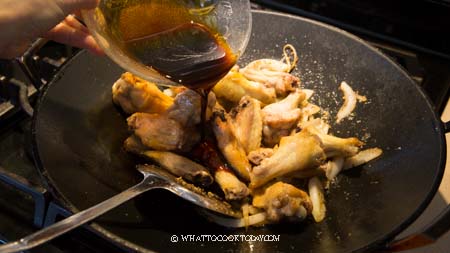 - Add the baked/fried chicken pieces followed by seasonings. Stir to mix to make sure the sauce is coating the chicken pieces evenly. Have a taste. It should be more on the sweet side. Add more kecap manis if needed