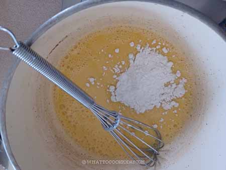 1. Prepare the custard filling. Whisk egg yolks, sugar, and salt in a bowl. Gradually add in milk and vanilla extract as you are whisking. Sift in the flour and/or starch (depending on which custard you are preparing, firm or soft type) into the mixture and whisk again until no lumps