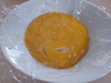- When ready to use the custard, for the firm custard, portion into 10 portions and roll into balls for easier wrapping. For the soft custard, stir to loosen it so it's smooth and creamy again and transfer to a piping bag