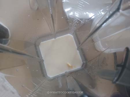 2. Place the cooked mung beans, coconut milk, pandan juice, oil, and sugar in the blender and blend until smooth.