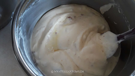 8. Add the lotus Biscoff bits you crush earlier and fold gently to combine. The mixture should be fluffy and voluminous.
