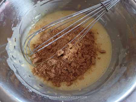 It has enough of Biscoff aroma in it. I want to be able to actually take a bite and immediately know that this is Biscoff cake. I like being able to bite into tiny pieces of Biscoff cookies in the cake too. Am I too greedy? LOL! I usually don’t use baking powder in most of my chiffon cakes, but for this one, I decided to put a bit to make sure the cake won’t have trouble supporting itself and will rise properly because of all the stuff we add in there.