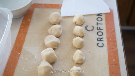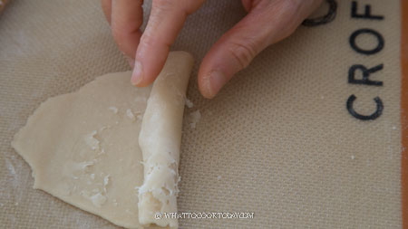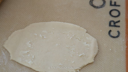 - For oil dough: Mix the flour with butter and continue to knead until you can form a dough. Divide into 12 portions. Rest both doughs for 30 minutes to 1 hour. Do not skip the resting