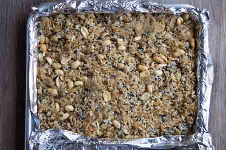 Bubble rice/puffed rice is tossed with meat floss, peanuts, sesame seeds and shaped into bars. They make the perfect snack and are one of the popular Chinese New Year goodies.