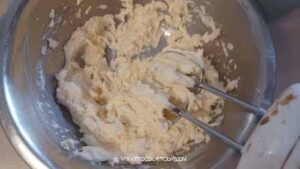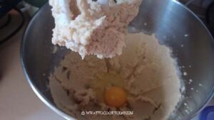 - Add the egg, one at a time and beat until just combined, scrape the side of the bowl before adding the second and beat again until just incorporated.
