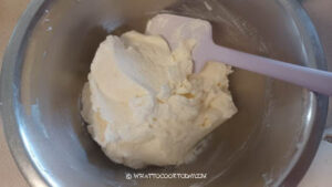 - Beat the butter and powdered sugar with paddle attachment in a standmixer for about 5 minutes on a medium speed. They should be light and fluffy, but don't overbeat it