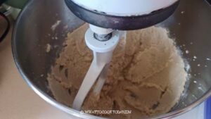 - In a mixing bowl of a stand mixer fitted with a paddle attachment, add softened butter, brown sugar, and granulated sugar and beat on medium speed for about 2 minutes until creamy.