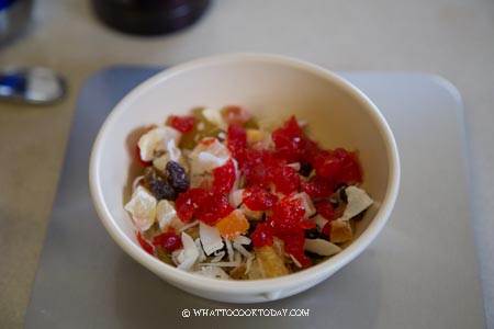 - You can also mix in chopped nuts if you like. I suggest half of it is dried fruit mix and the other half is assorted nuts like chopped pecan, almonds, cashews, etc