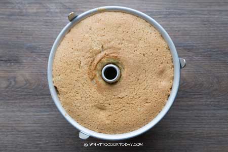 - I find that the flavor develops further if you can wait until the next day. Once it has cooled down completely, use a spatula knife to run through the edge and the outer center of the tube to help release the cake. Gently push the base to lift the cake out. Use the knife again to run through the base of the pan and then carefully release the cake. There you have it !!! 🙂 Enjoy and try to finish it within 3 days (which I'm sure it will be gone before then)