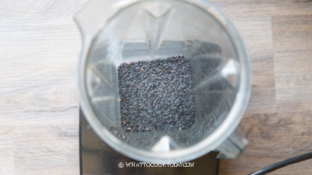 - Toast the black sesame seeds on the dry pan over medium-low heat until you start smelling the nice nutty aroma, about 5 minutes or so. Take care not to burn them. Let them cool down completely before grinding into a powder. If you grind them when they are warm, they will turn into black sesame paste