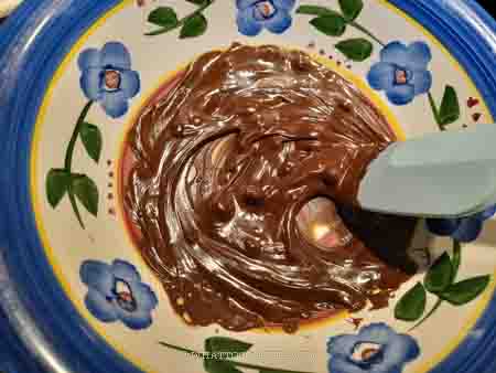 - Put a heat-proof bowl over a saucepan filled with gently simmering water. Add the chocolate and let it melt over medium-low heat. When you see most of the chocolate has melted but there are still few pieces not melted, remove from the heat and stir until they are all melted. Set aside to cool down a bit when you prepare other things