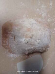 - Tip the container upside down to let the dough gently slide down upside down. Dust the surrounding of the dough with flour. Since I use a square container, the dough will be sort of “squarish”. If you use a round container, the dough will be “roundish”