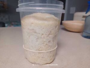 - If it’s really warm where you are, you may want to put it in a cooler bag with a pack of ice. Because the starter is already added at this point, we don’t want it to start fermenting way too early before we have a chance to strengthen the dough during bulk fermentation