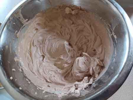 - Put the very cold heavy cream, cocoa powder, powdered sugar, peppermint extract, and a pinch of salt in a mixing bowl. Use a whisk to manually whisk or use a handmixer to whip until the mixture thickens and has a medium-firm peak. Don't over whisk until the cream turns too stiff and grainy