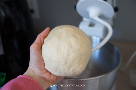 4. DO NOT be tempted to add any extra flour. This may take about 10 minutes or so. The dough must pass a windowpane test, meaning, when you stretch a small amount of dough thinly, it won’t break and a light can pass through
