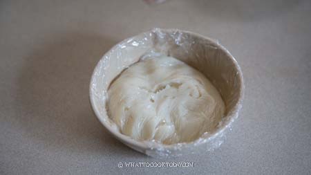 1. Place milk and the bread flour in a small saucepan. Whisk until there is no more lumps. Cook this mixture over low-medium heat until it reaches 65 C (149 F). Remove from the heat and cover with a plastic wrap, touching the tangzhong so the skin won’t form. You can use it on the same day once it has cooled down, but I highly suggest using this the next day. It improves the taste of the bread. Store this in the fridge