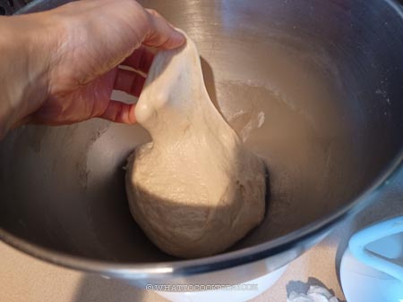 - DO NOT be tempted to add any extra flour. This may take about 10 minutes or so. The dough must pass a windowpane test, meaning, when you stretch a small amount of dough thinly, it won't break and a light can pass through