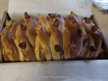 The possibility of flavor that you can do with bread is endless and that’s the fun part about baking bread to me, whether they are sweet or savory kind. A while ago I baked some chocolate shokupan, which is nice but without any swirl pattern. It was also made with tangzhong. This time around I want to create some swirls and I use a slightly different recipe, just slightly!