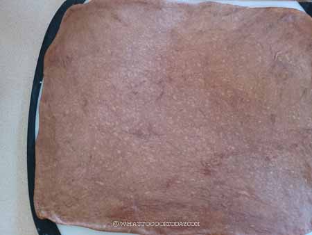 - Roll each dough into about 10 x 14 inches rectangles, roughly! Try to keep them both roughly about the same size