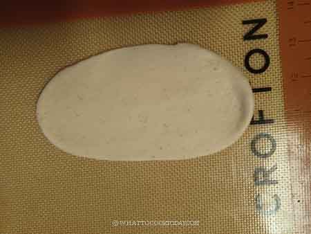 8. Work with one dough at a time, use a rolling pin to flatten the dough into an oval shape, about 4-5 inches long and 3 inches wide.