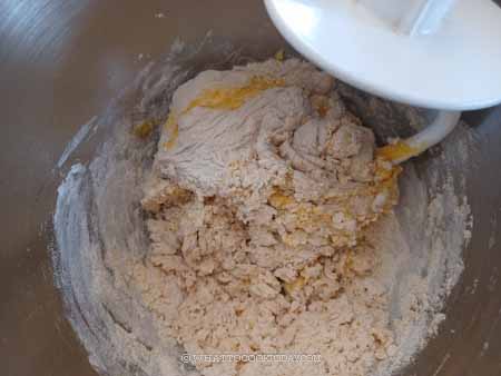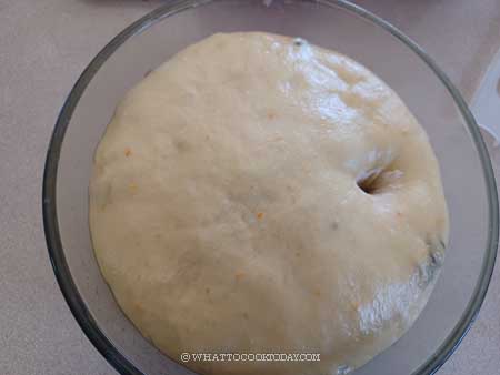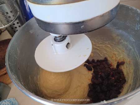 4. Add the orange zest and chopped dried fruit and just knead on the lowest speed only to combine everything. It may not fully combined, but don’t worry, it will distribute more evenly when we shape the dough. Careful not to over kneading the dough or the gluten may break and turn into a sticky mess.