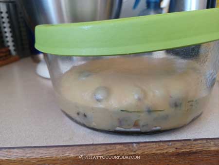 6. Let the dough ferment at a warm place until it doubles in size. It took me about 45 minutes using SAF Gold instant yeast. I made it before with active dry yeast and it took about 2-3 hours for the dough to rise near double.