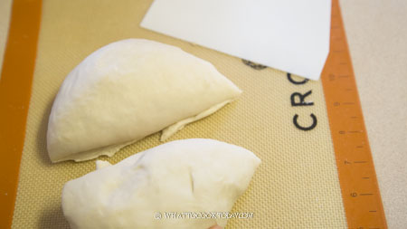 - Knead the dough for a few times and you will notice that the dough is even smoother and flexible by now. Divide the dough into two. work with one at a time and keep the rest covered so it won't dry out