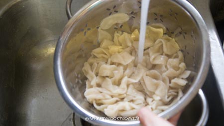 13. Drain off all cooking water and refresh the noodles with clean water. This is to stop the cooking process