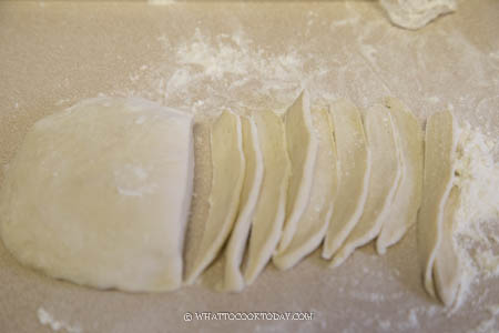 8. Divide the dough into two. work with one at a time and keep the rest covered so it won’t dry out