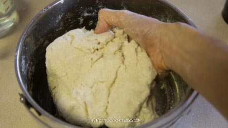 3. The dough is very rough and at a dry side, but as long as it can comes together into one dough ball, don’t add anymore water