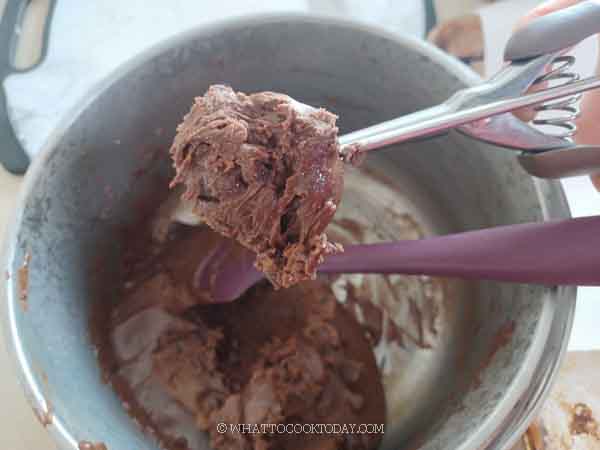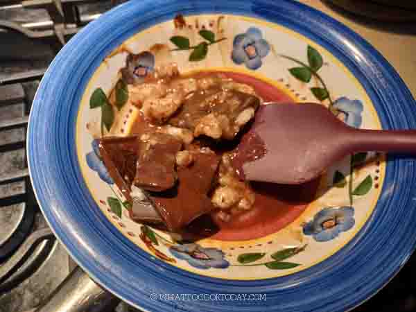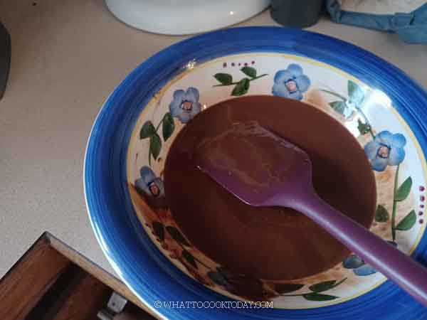 - Melt the chocolate with butter over a bain-marie. Make sure the water is just simmering and not touching the bottom of the bowl you put the chocolate in. Set it aside to let it cool down as you prepare other things