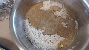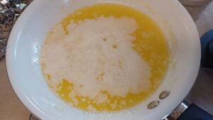 - To the same pan, add butter and let it melt, then let it cool down
