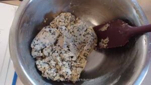 - Use a spatula to combine until you get an evenly combined dough