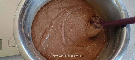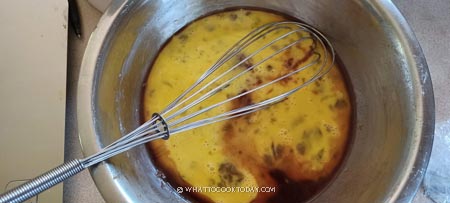 4. Let the cream cheese mixture cools down before adding eggs as we don’t want to cook the eggs. Then add eggs and sugar and whisk again to combine into a smooth and more watery batter