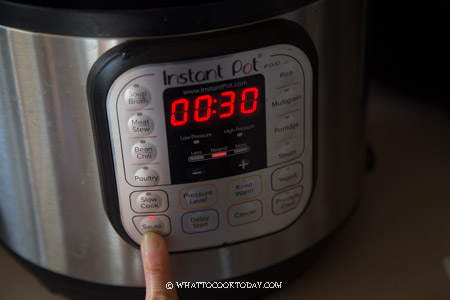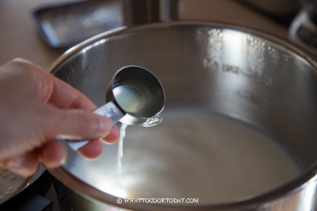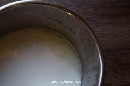 Pour the milk into the inner pot of instant pot. Push “SAUTE” button and use a spatula to stir the bottom to prevent the milk sugar from getting burns at the bottom of the pot. Heat it up to 180 F and then heat “CANCEL” button