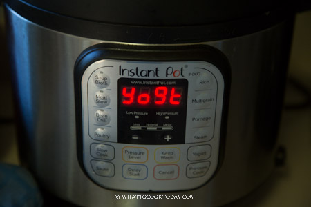 - Pour the milk into the inner pot of instant pot. Close the lid. Vent position doesn't matter here. Push the "yogurt" button until the screen reads "boil". It may take somewhere around 30-45 minutes. When it's done, the screen will show "yogt"