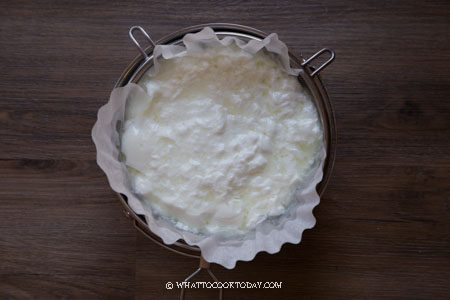 Carefully transfer everything into the fridge and let it strain for a few hours. I usually strain mine for at least 8-12 hours. The longer you strain, the thicker it is. So, it’s up to you to find that consistency you like.