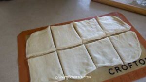 - Cut the dough into 8 rectangles, cover and let them rest about 5 minutes