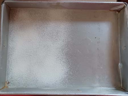 4. I use a 9 x 13 inch sheet pan and I dusted 1/3 of it liberally with some milk powder. We won’t be using the entire pan, just a corner of it