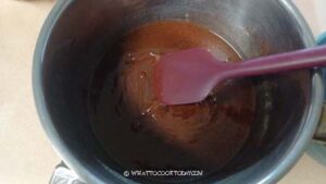 - Remove from the heat and stir in both chocolate and continue to stir until all the chocolate melts